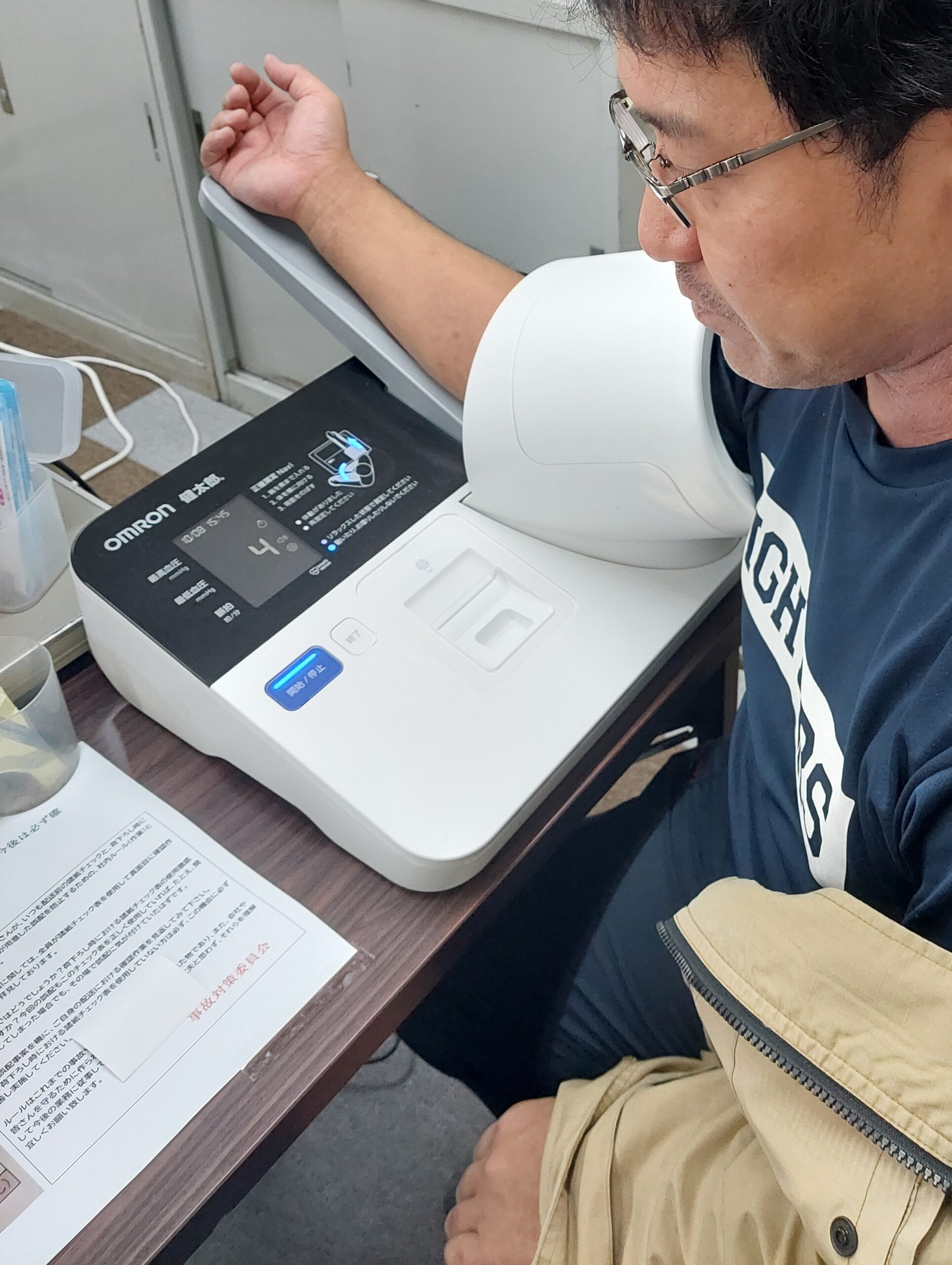 トラックの運行を開始する前に、血圧を測定する取り組みを新たに導入いたしました。